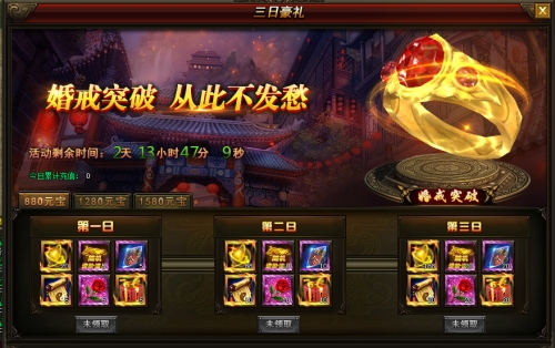 活动规则:累计充值一定元宝可领取对应奖励,连续充值可领取更多奖励
