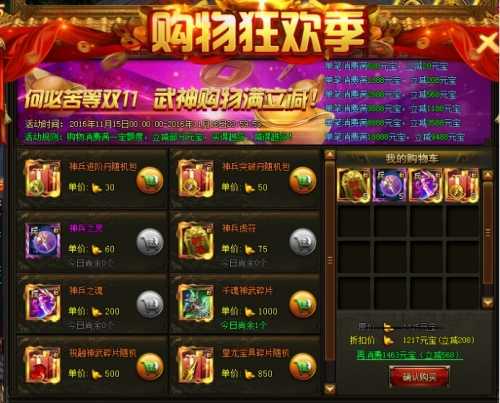 活动规则:购物消费满一定额度,立减部分元宝,买的越多,减的越多!