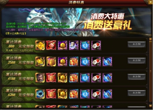 活动规则:活动期间,每日累计消费达到一定的元宝数量,即可领取相应的奖励。