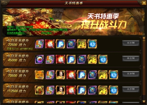 活动内容:活动期间,每天战力提升达到一定的值,即可领取相应的奖励!