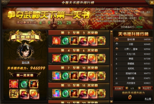 1. 活动时间内根据天书新增战力进行全平台排名
