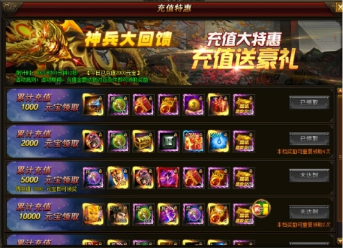 15000 | 1 | 高级国师碎片*200 | 神许褚/神吕布*200碎片任选包 | 美人战骑进阶丹*10000 | 美人战骑虎符*25 | 美人战骑之灵*25 | 神许褚/神吕布前4本技能书*2任选包 | 神许褚/神吕布装备1升级材料*2任选包 | 神许褚/神吕布大招技能书*2任选包 | 神许褚/神吕布装备2升级材料*3任选包 |