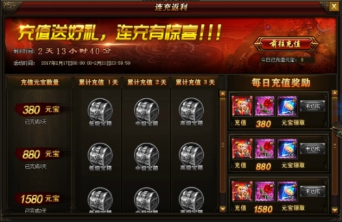 活动期间内累计充值达到一定额度可领取对应奖励,另有每日充值额外奖励
